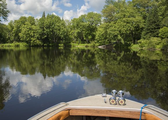 From the launch, boaters and paddlers can travel downstream toward Lake Cecebe, with approximately 36 kilometres of scenic river paddling and boating connecting the Village to the lake.