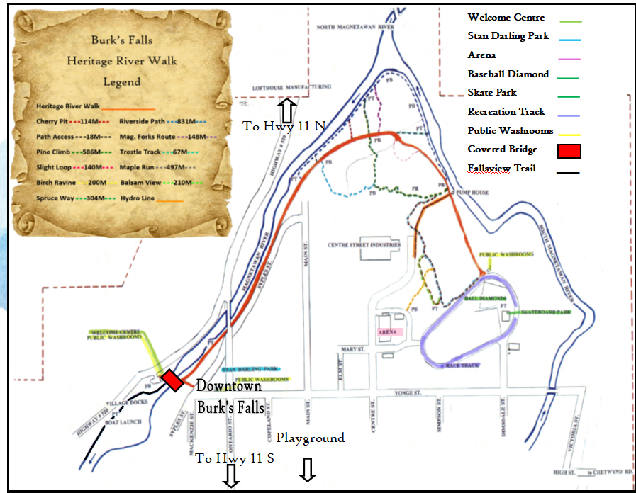 - Washrooms (Adjacent Burk’s Falls Welcome Centre)